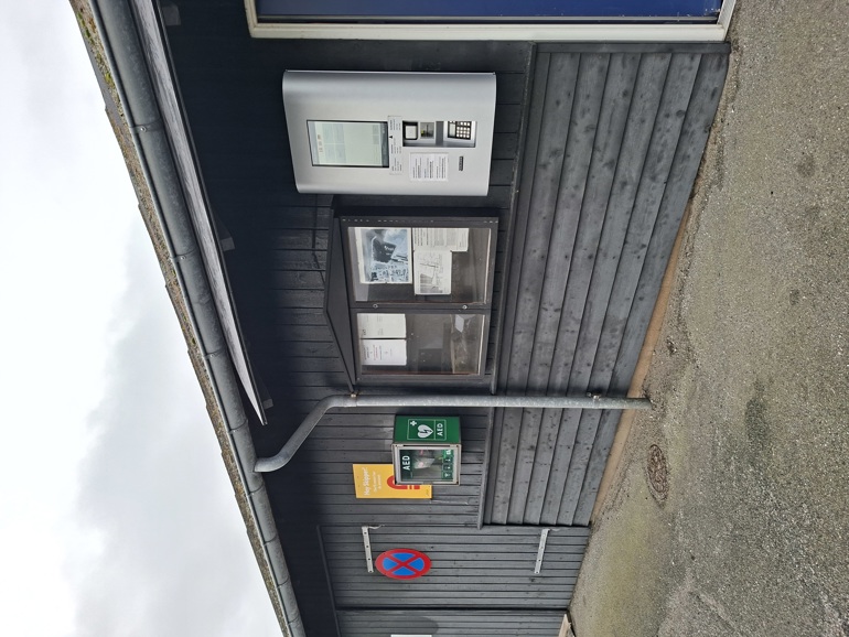 En hjertestarter er tilgængelig døgnet rundt og er placeret udenfor havnekontoret i en grøn beskyttelsesboks.